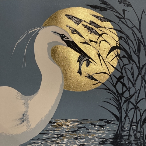 Primarily a linocut printmaker, Sue’s work is inspired by the East Anglia’s diverse landscapes and wildlife, from the great open skies of the fens, to the far reaches of the north Norfolk coast, through to the wild, open, windy solitude of the salt marshes and wetlands.