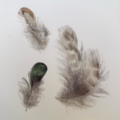 Study the basis anatomy of a bird feather and produce a small, realistic painting in watercolour. A step-by-step process suitable for novice to intermediate level. Suitable for those who like studying/drawing careful detail and who have some experience of working in watercolour.