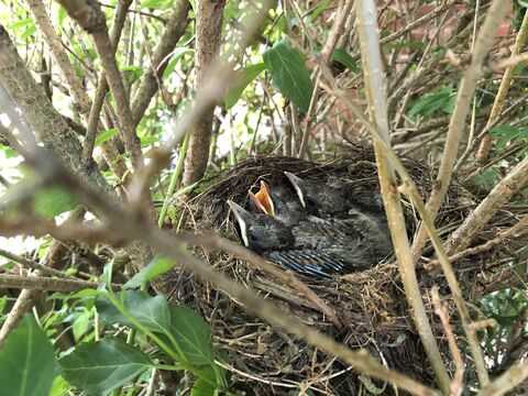 A bird's nest containing chicks