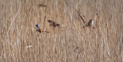 Birds sitting on reeds