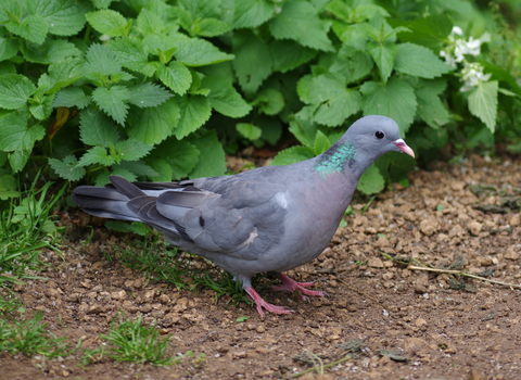 The stock dove looks very much like the woodpigeon, but without the white neck and wing patches. It can be spotted in woodlands and parks, and on farmland in winter, but rarely visits our gardens.