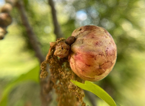 Living up to its name, the oak apple gall wasp produces growths, or 'galls', on oak twigs that look like little apples. Inside the gall, the larvae of the wasp feed on the host tissues, but cause little damage.