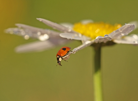Our most common ladybird, the black-on-red markings of the 2-spot Ladybird are familiar to many of us. Ladybirds are beneficial insects, managing garden pests - encourage them by putting up a bug box.