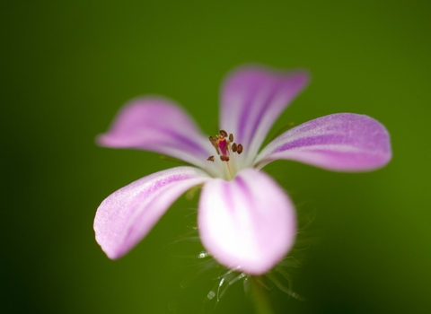Herb-robert is a low-growing plant, with small, pretty, pink flowers. Look for it in shady spots in woodland, hedgerows and coastal areas.